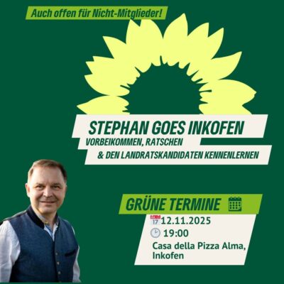Inkofen – Stephan Griebel, Landratskandidat der Grünen im Landkreis Freising, kommt nach Inkofen, um sich den Bürgerinnen und Bürgern im Gemeindebereich Haag an der Amper persönlich vorzustellen. Die Veranstaltung bietet Gelegenheit zum direkten Austausch über lokale Themen, Anliegen und die politischen Ziele des Kandidaten.
